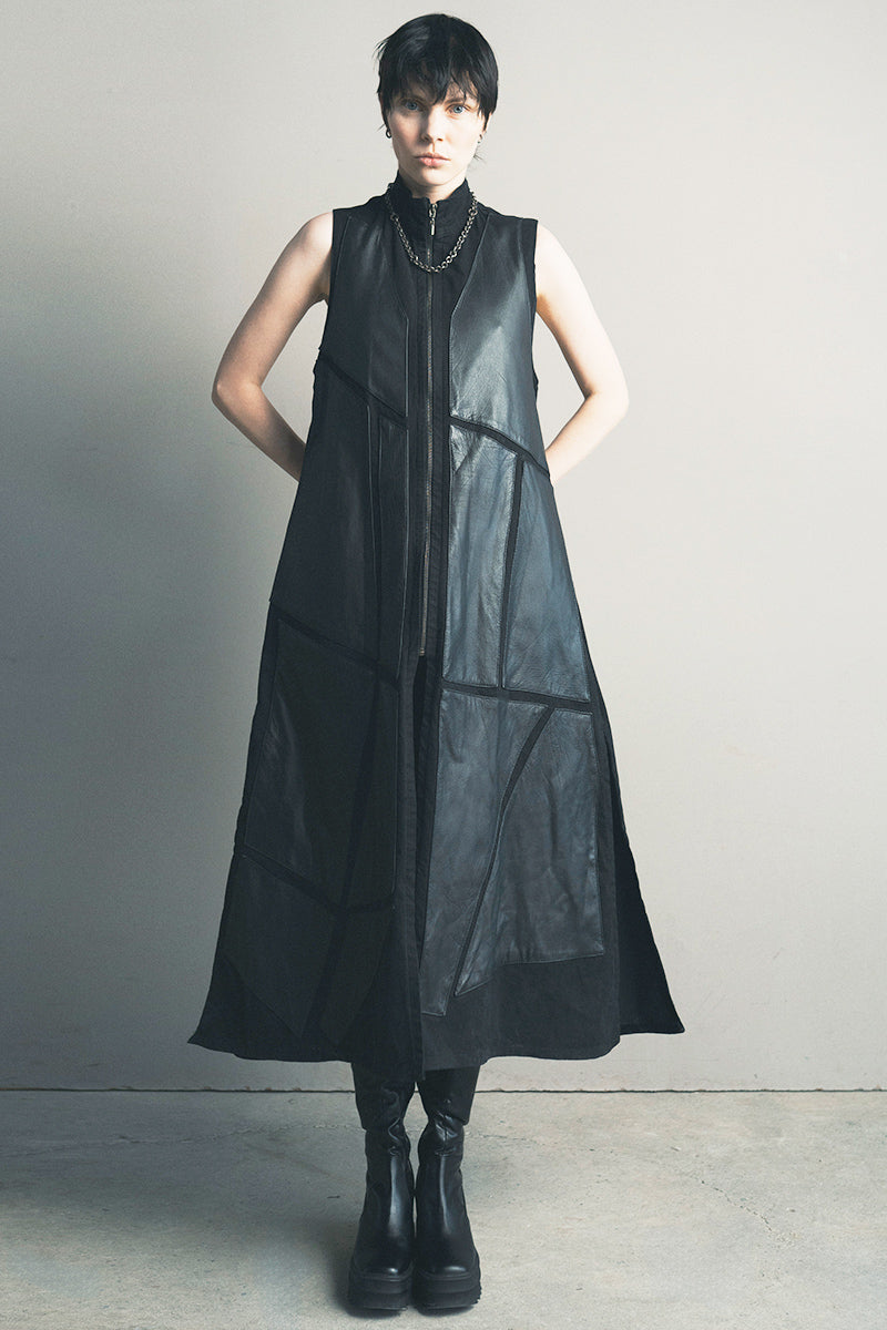 Diseño que fusiona de manera artesanal y aleatoria el cuero y el dril en una prenda con una identidad única.