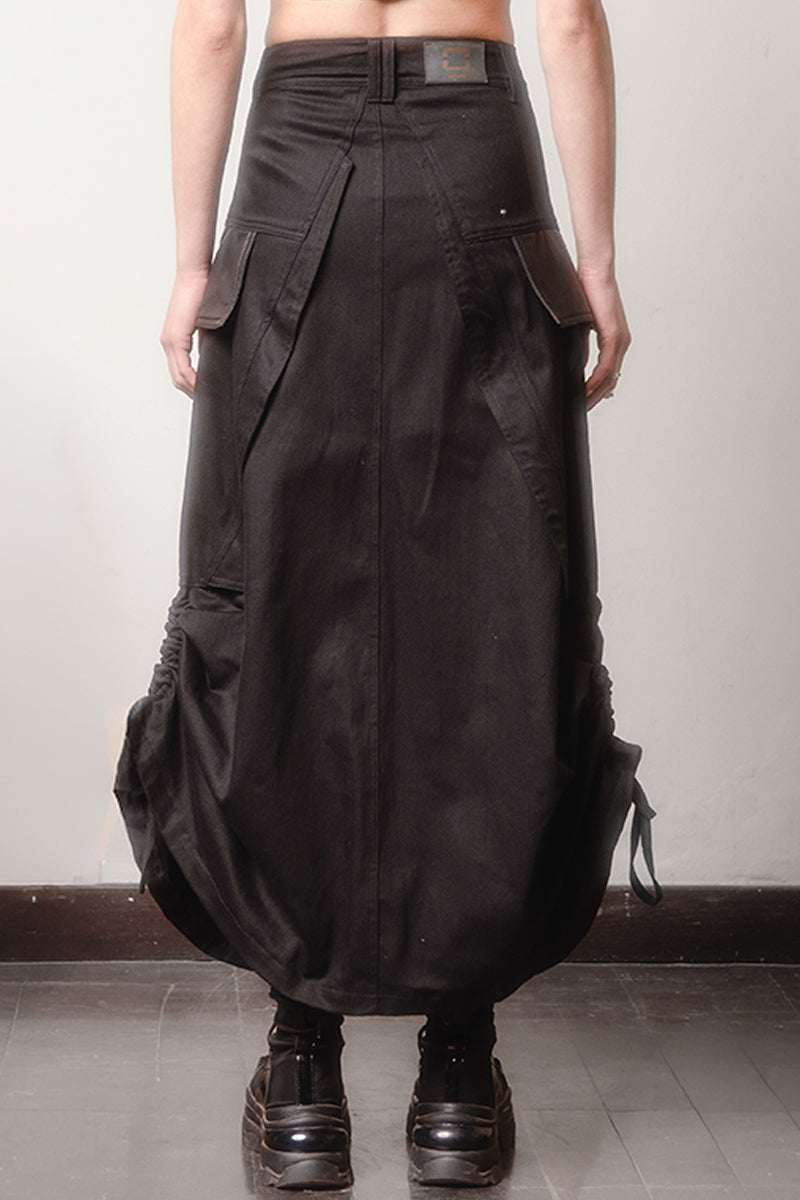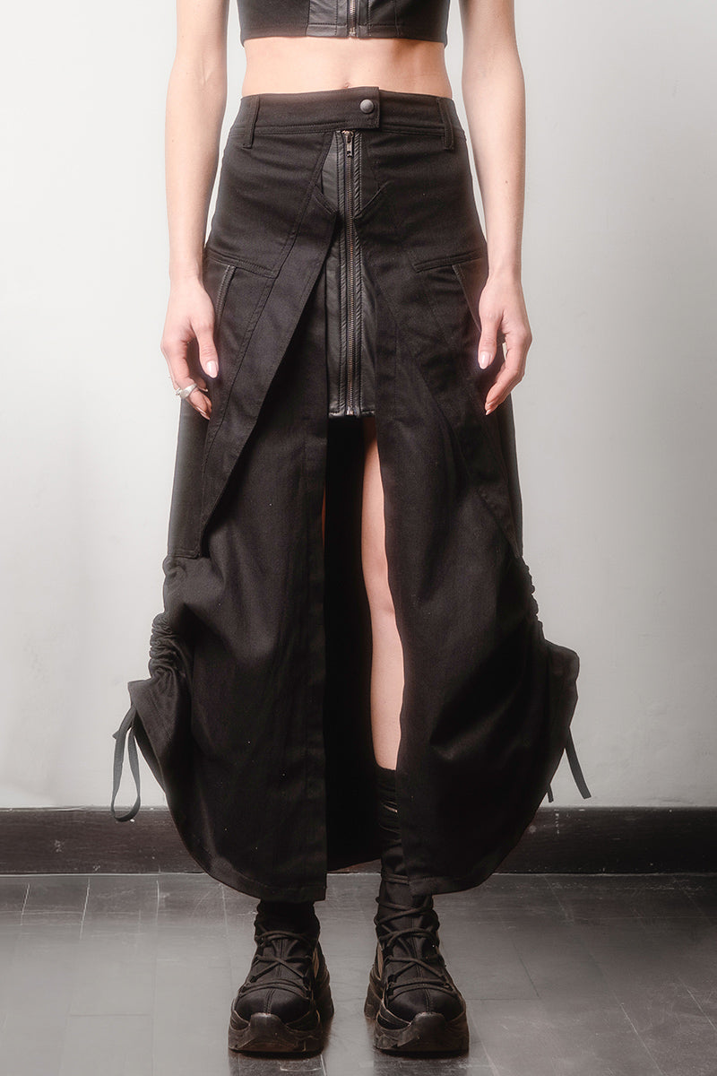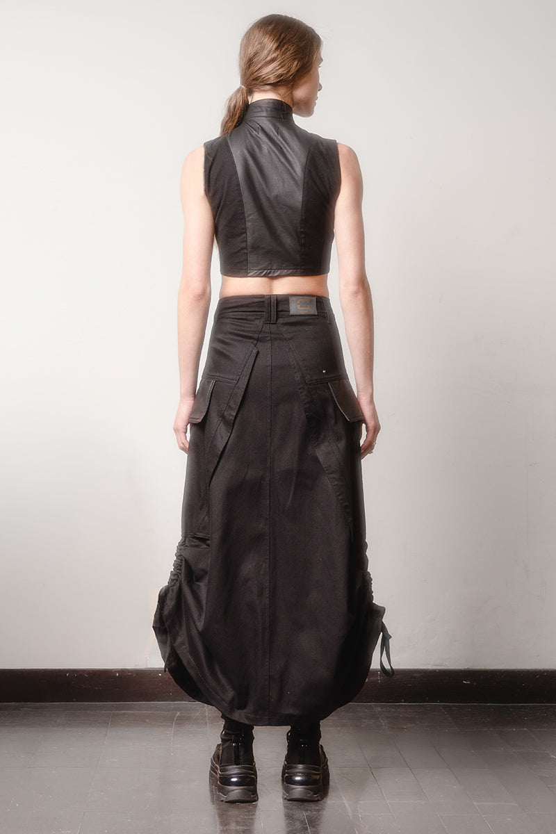 Falda en dril 98% algodón y 2% expandes combinada con cuerotex 100% poliéster.