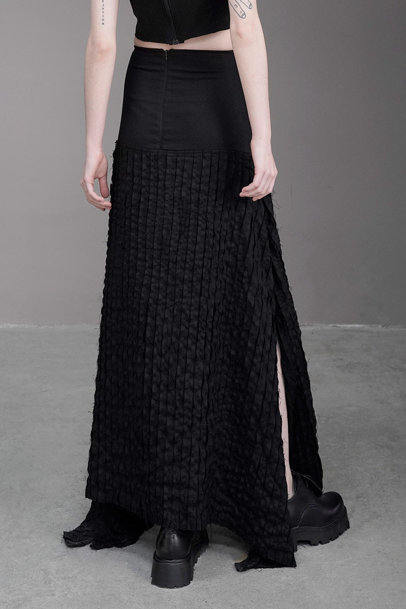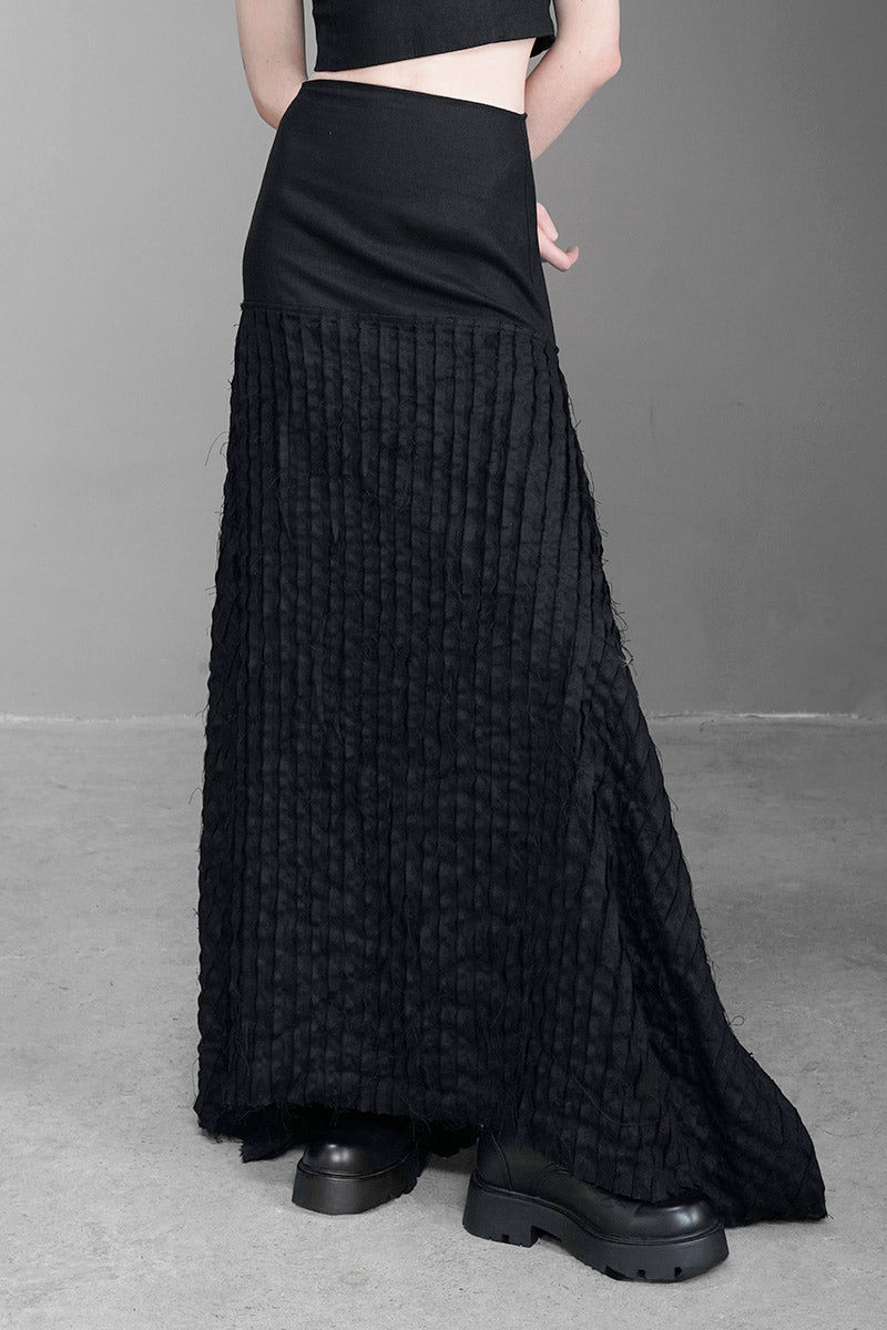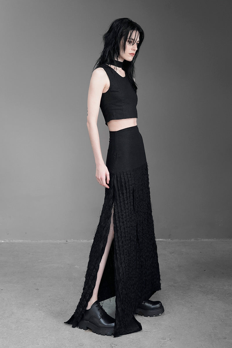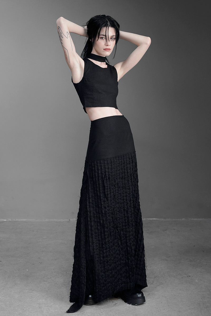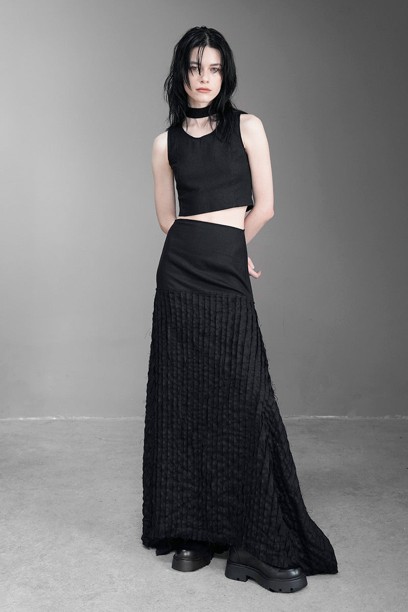 Prenda construida en textil de lino, doble capa texturizada, en color negro.
