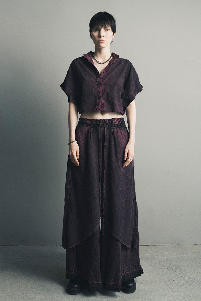 Diseño en dos capas de lino con un tinte experimental creado exclusivamente por nuestro equipo para este look.